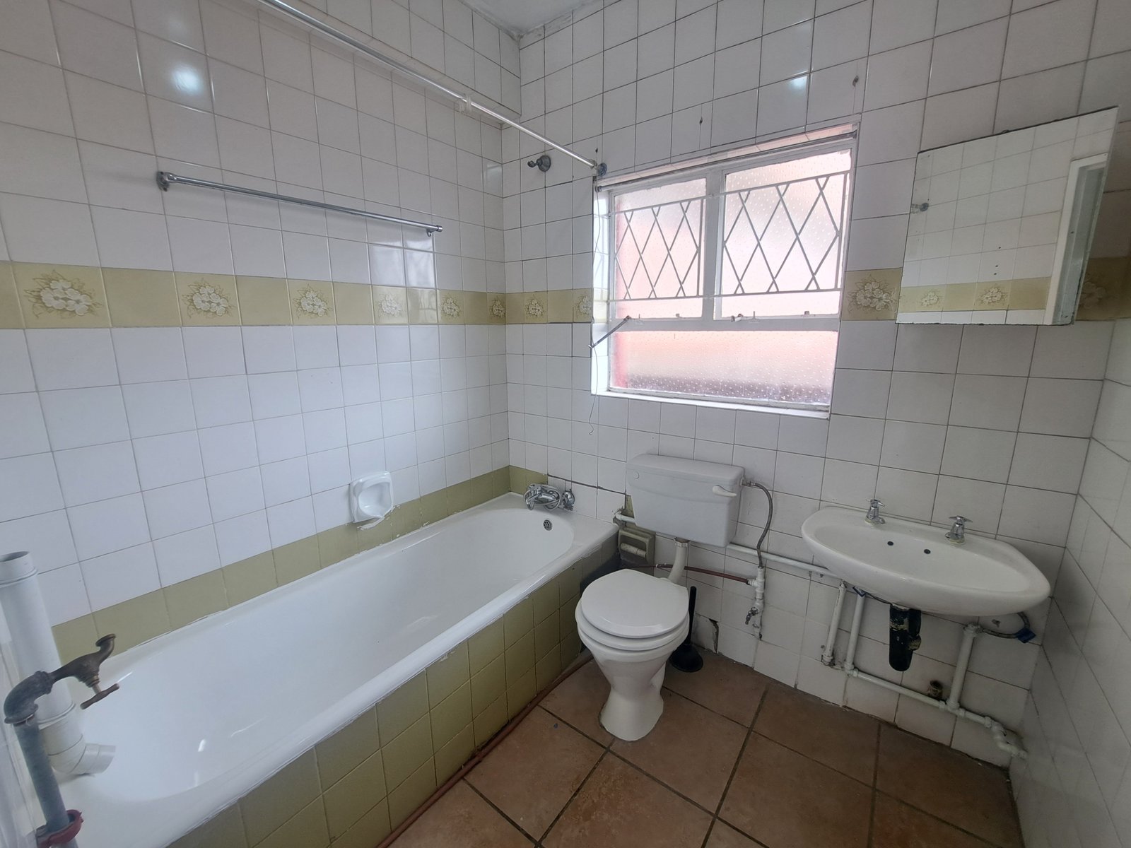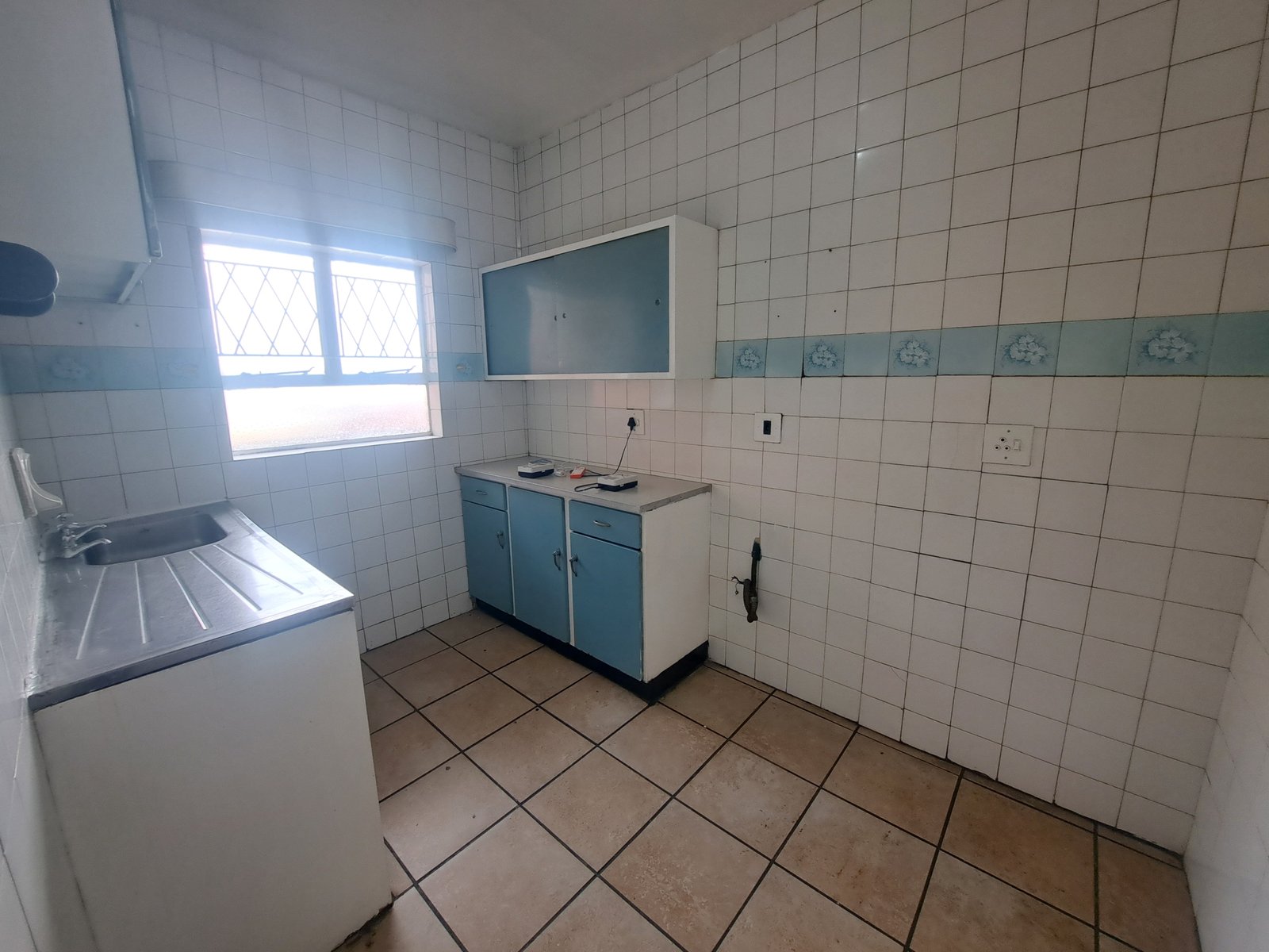 The main bedroom is generously sized, while the additional half-bedroom is ideal for a home office, nursery, or guest room. A full bathroom, fitted with a shower over bath, is neatly finished and fully tiled for easy maintenance. The kitchen is practical and durable, featuring a steel finish and full tiling, perfectly suited for everyday living.