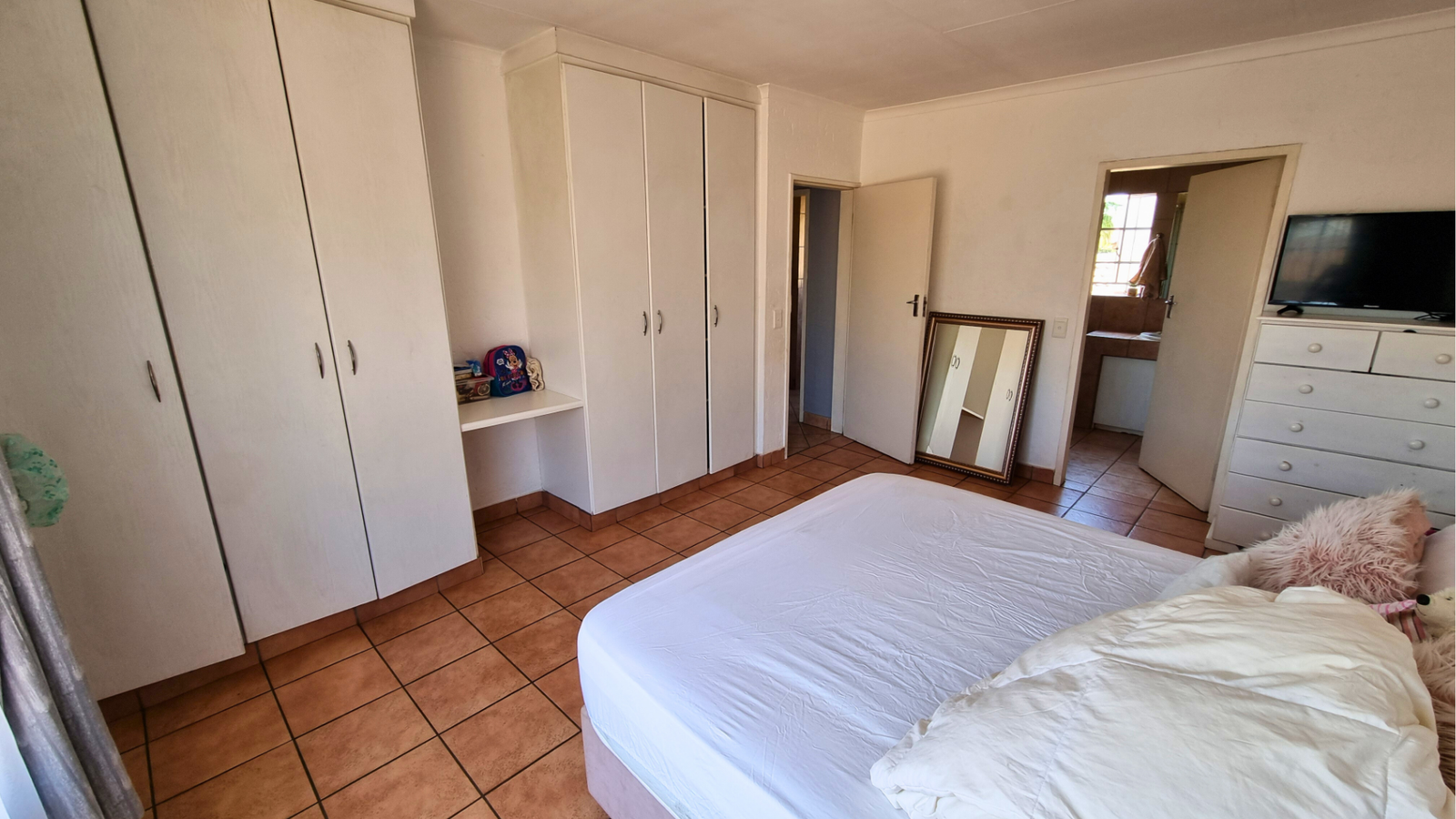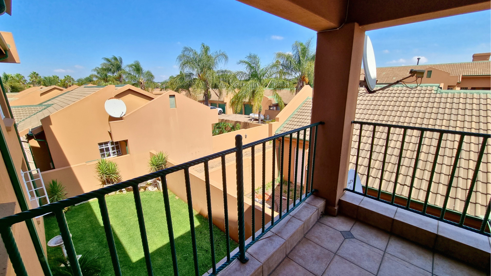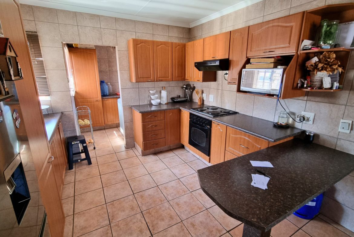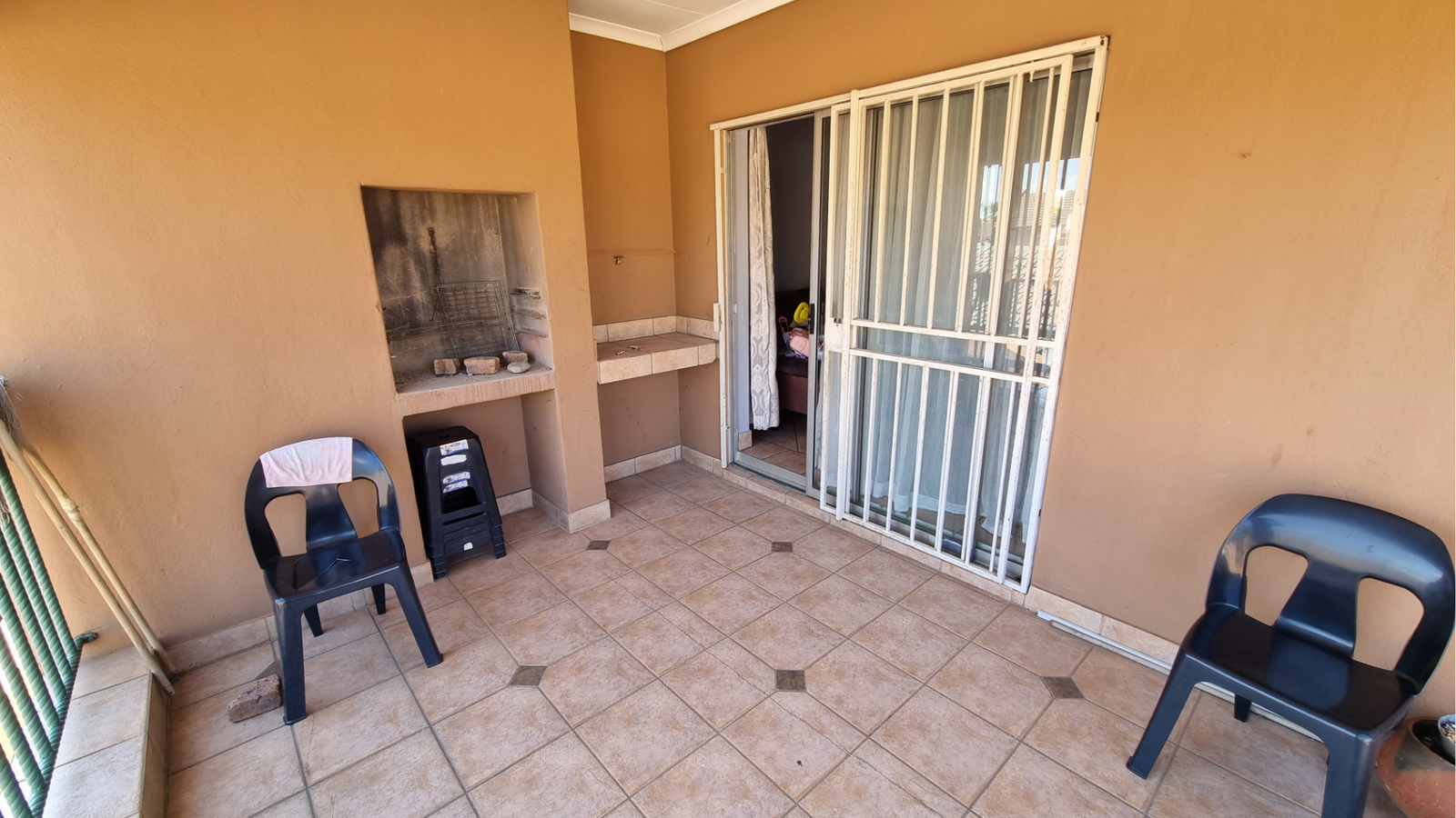 There are three tiled bedrooms and two bathrooms, providing ample space for a family or professionals working from home. Step outside onto the spacious balcony, complete with a built-in braai — perfect for relaxing or entertaining guests.
