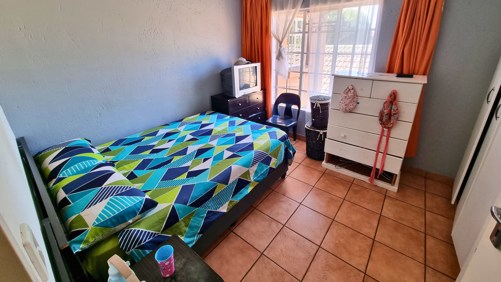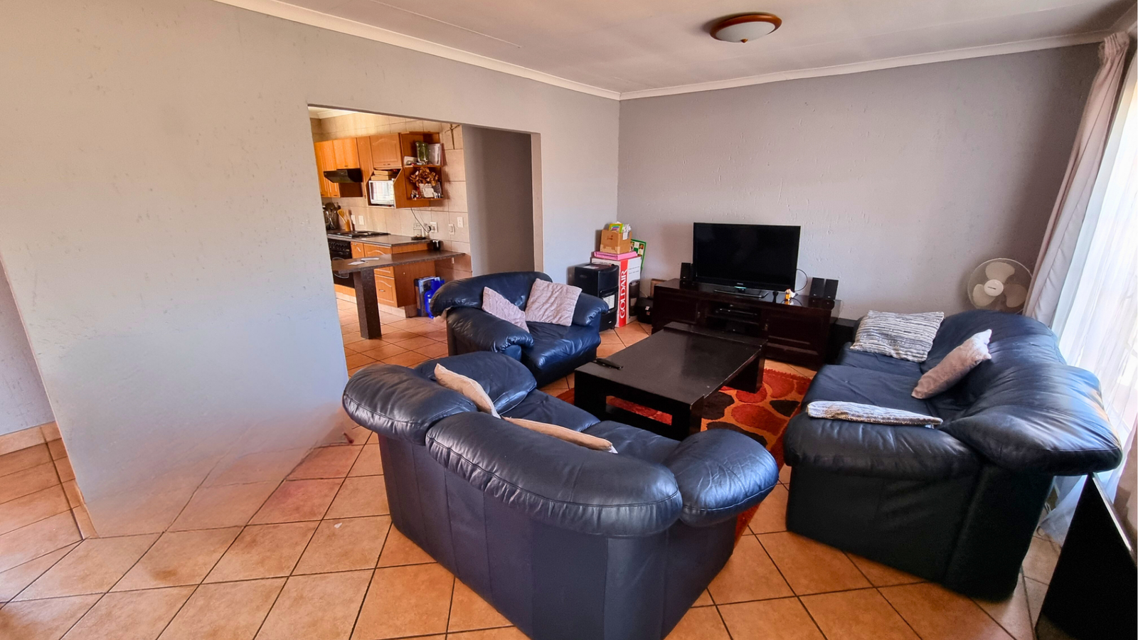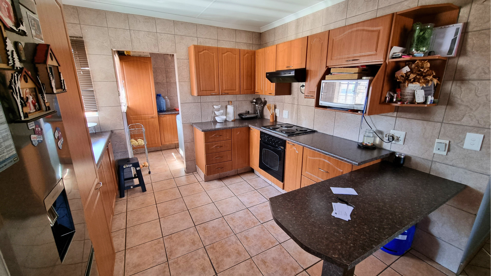 There are three tiled bedrooms and two bathrooms, providing ample space for a family or professionals working from home. Step outside onto the spacious balcony, complete with a built-in braai — perfect for relaxing or entertaining guests.