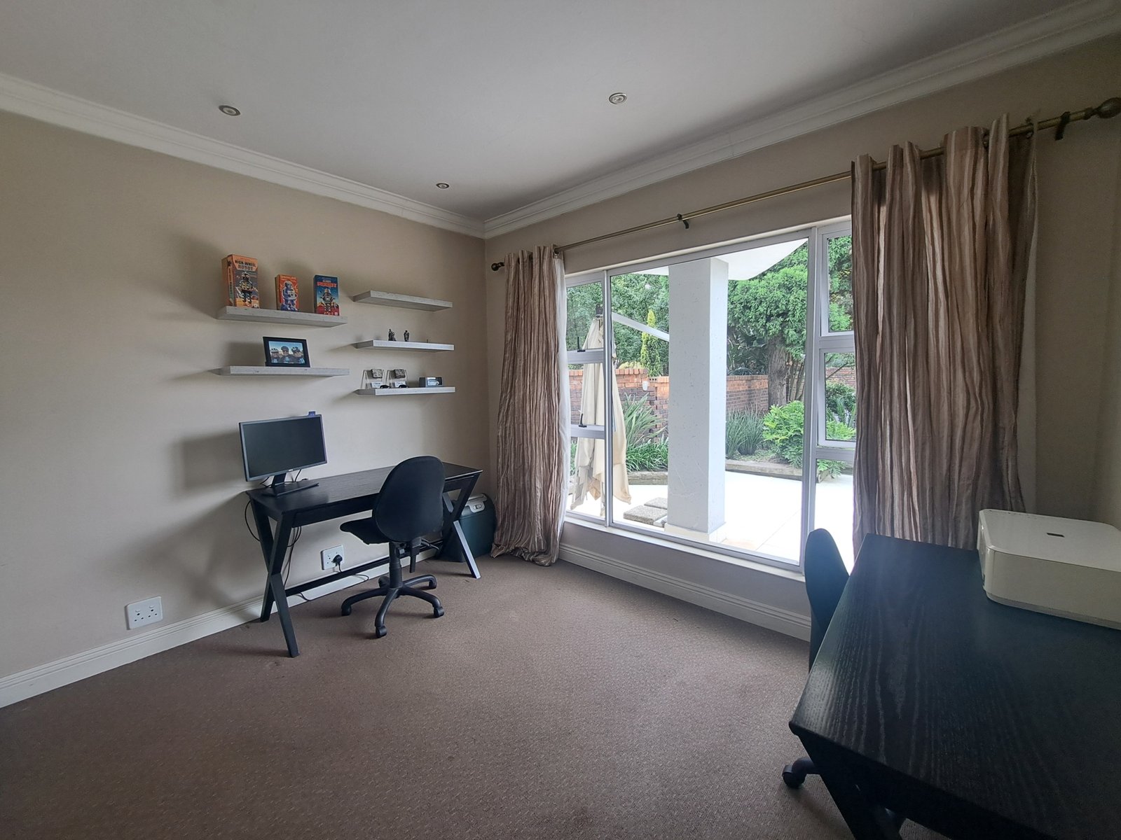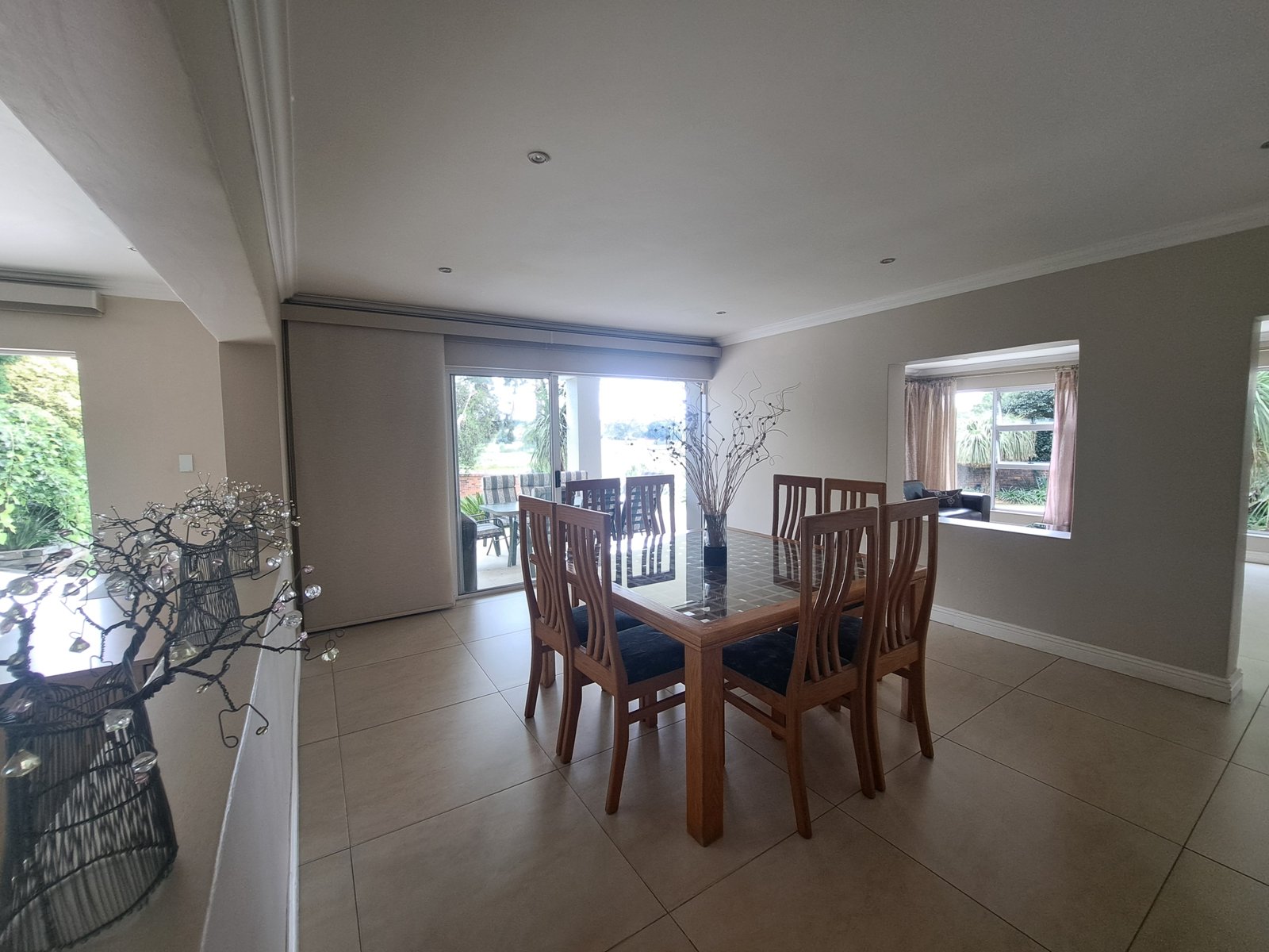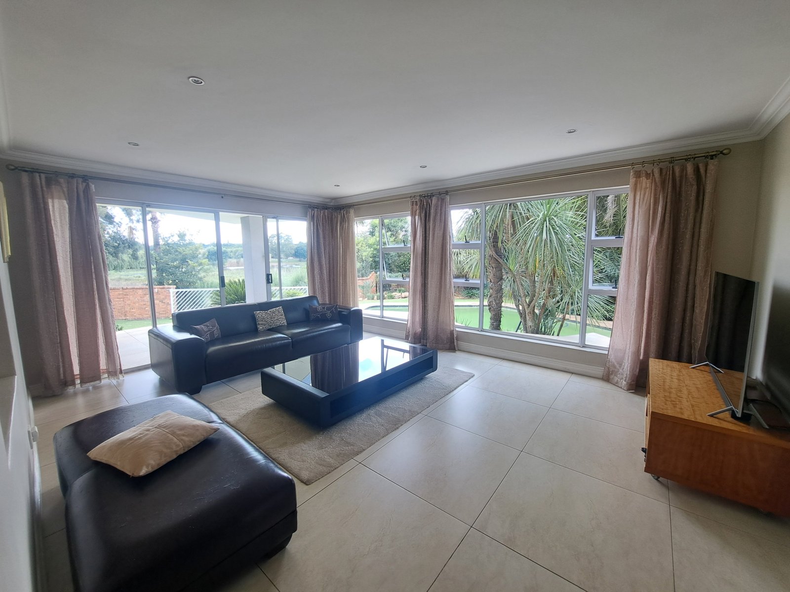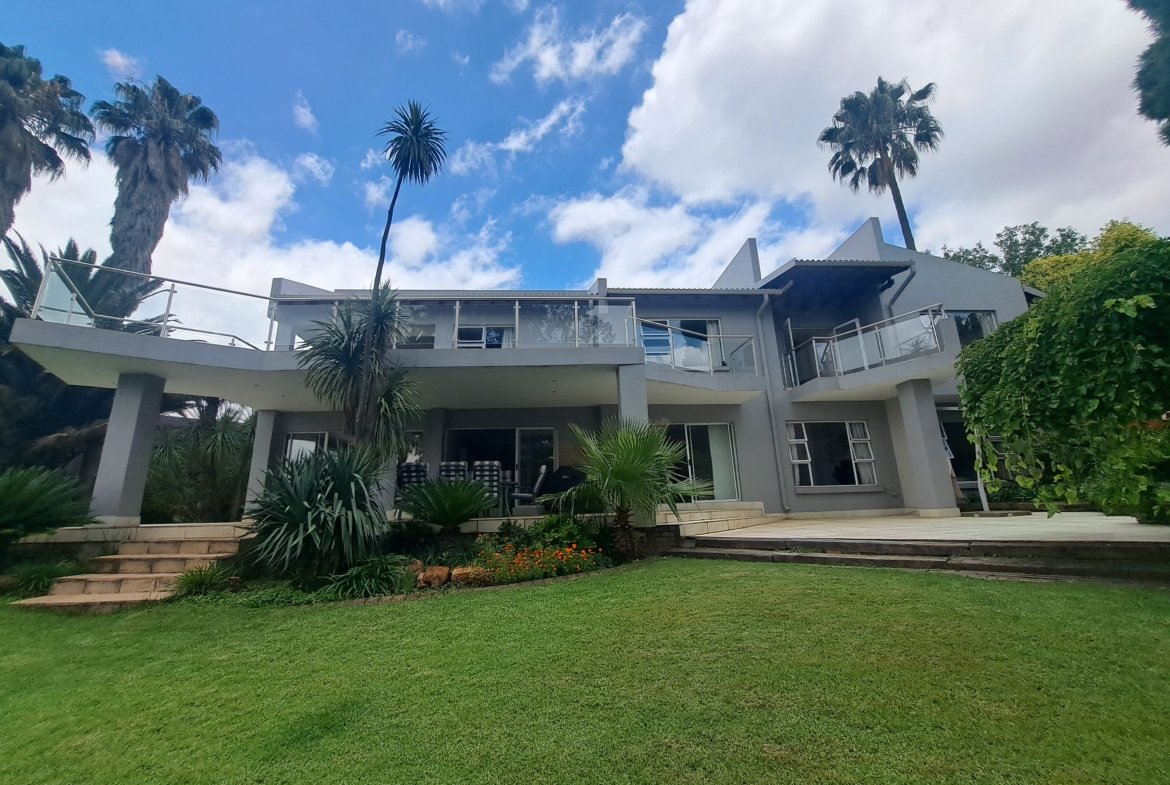 This double-storey family home is situated within a secure enclosure and boasts a beautiful view of Homestead Dam. The lounge, dining room, and family room all feature sliding doors, creating seamless indoor–outdoor living.