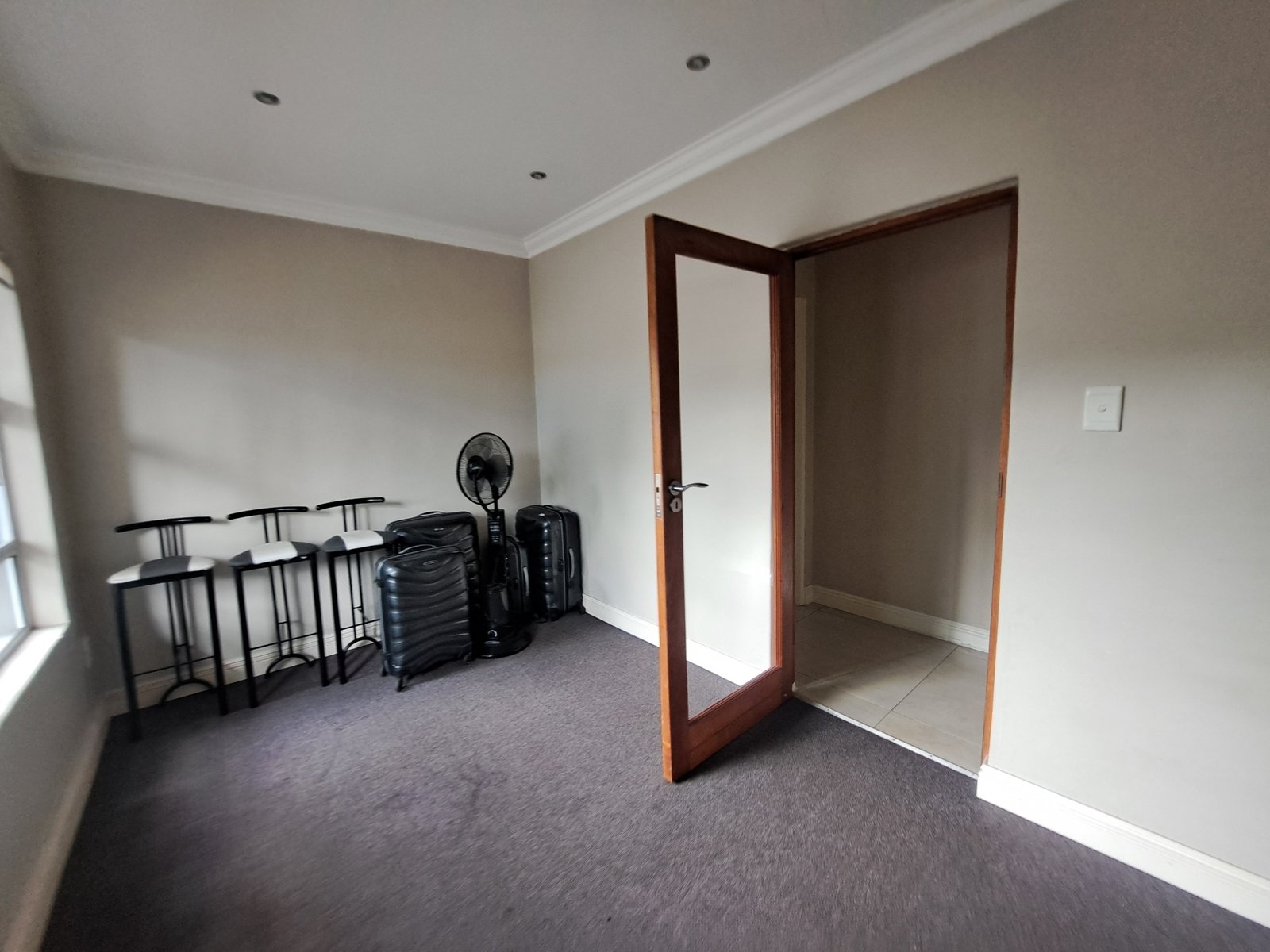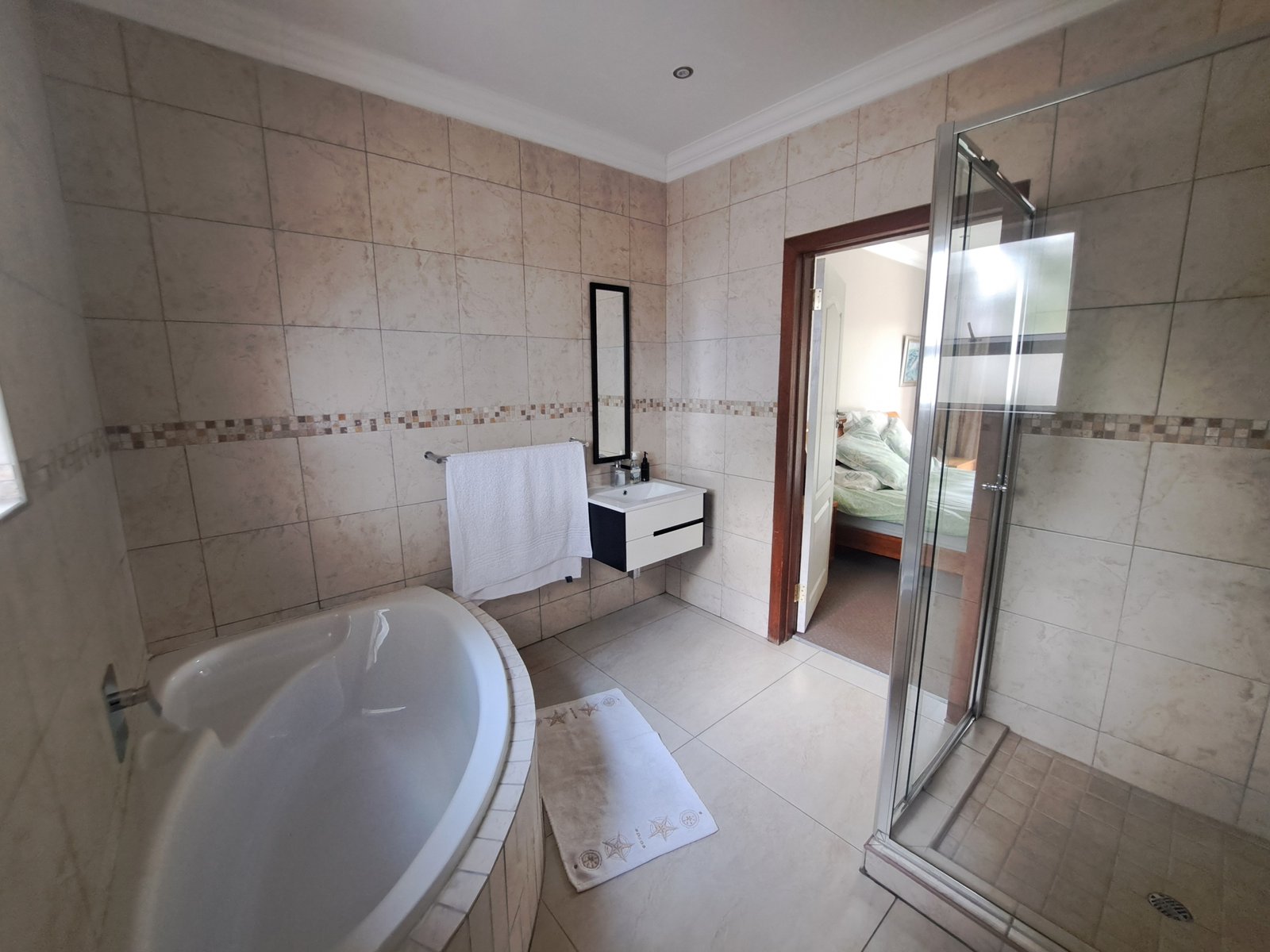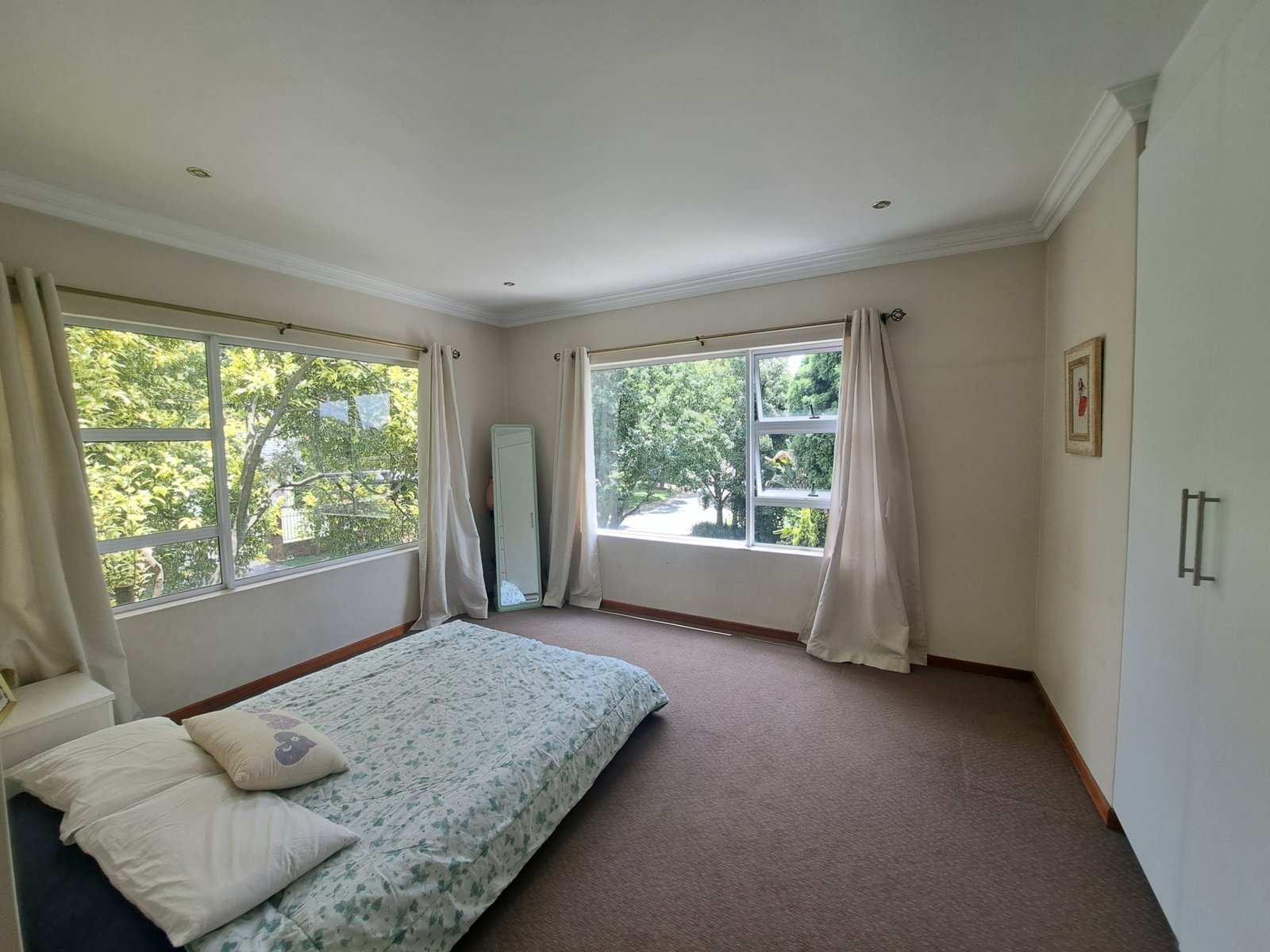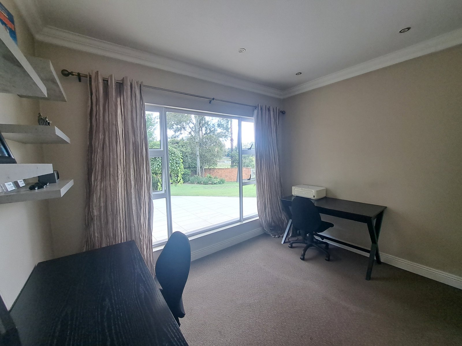 This double-storey family home is situated within a secure enclosure and boasts a beautiful view of Homestead Dam. The lounge, dining room, and family room all feature sliding doors, creating seamless indoor–outdoor living.